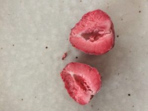 小粒のフリーズドライの苺にチョコレートがしみこんでいます。
