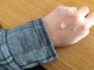 そして、この1滴だけで物凄く伸びがいいので、手の甲に塗りましたが、実際は1滴では手の甲だと余るぐらいに伸びます。
